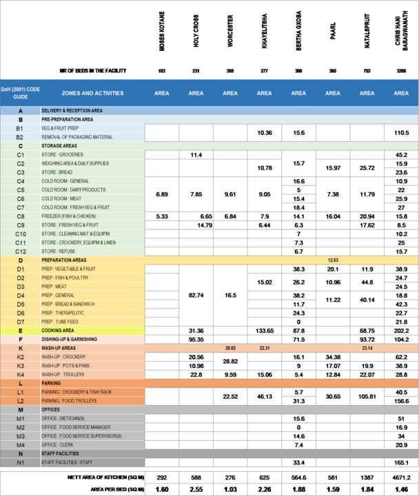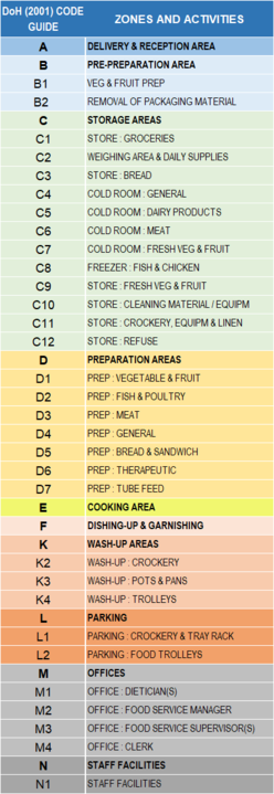 In order to align this design guide with the DoH (2001), the numbering code guide in the DoH document will be used in this document. See TABLE 2.1 for the codes. The colour selected for each zone is arbitrary and only used to visualise relative positions of zones and activities and their relationship to their adjacent activities.