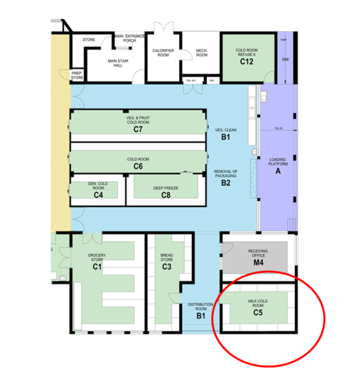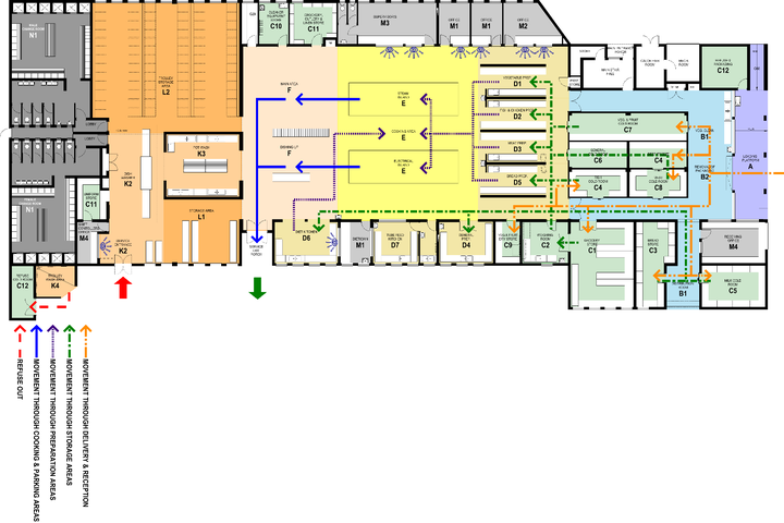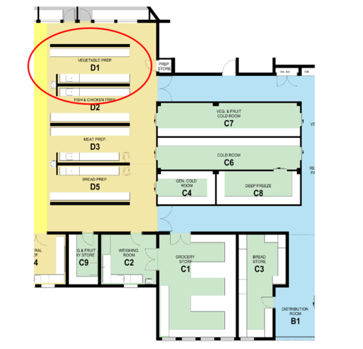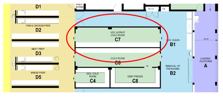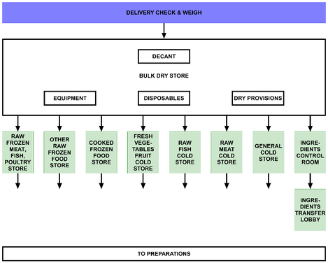 The above workflow diagram can be detailed, as in Workflow from delivery to storage and Workflow from storage to dishing-up diagrams below: