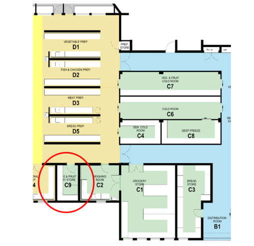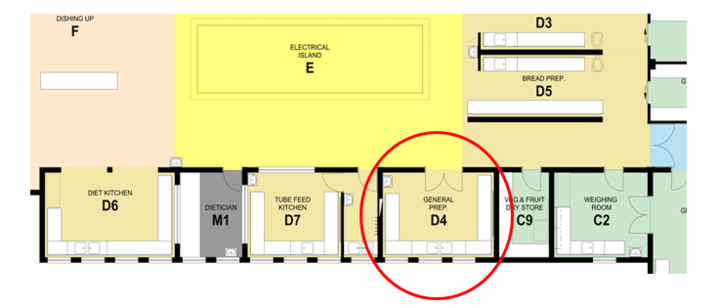 Ideally it should also be on the same level as the wards in order to reduce reduce the transport distance for food and the movement of people. See Figure 1.