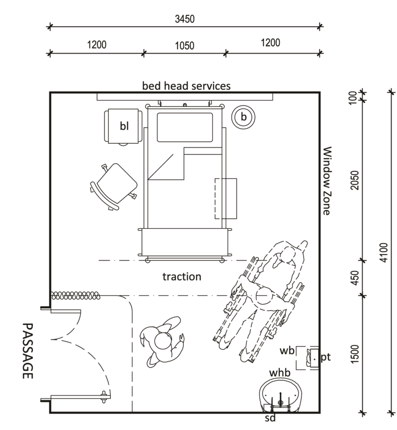 Single-bed unit (minimum space dimension requirement)