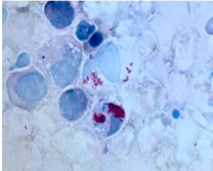 Intracellular bacteria are present in both neutrophils and macrophages. Further away from the site of acute inflammation, bacteria are mainly seen inside the macrophages.10
