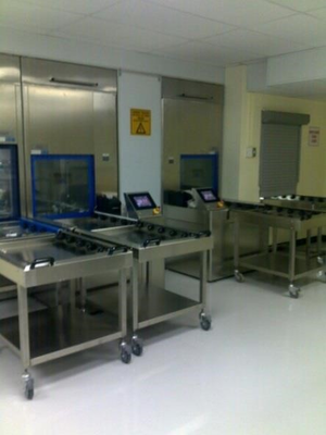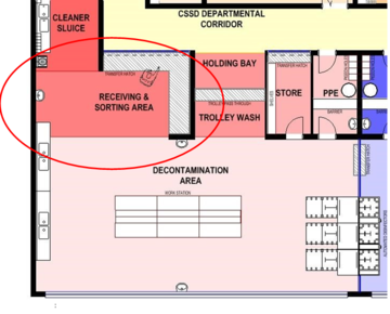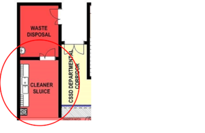 It is critical to the functional efficiency and safety of the CSSD that these spaces are sequentially linked for one-way flow-through of instrumentation. The separation between the dirty area, where soiled goods are collected, and the clean area where washed and disinfected instruments are inspected, sorted and packed, is realised by a high throughput pass-through washer disinfector barrier. | It is critical to the functional efficiency and safety of the CSSD that these spaces are sequentially linked for one-way flow-through of instrumentation. The separation between the dirty area, where soiled goods are collected, and the clean area where washed and disinfected instruments are inspected, sorted and packed, is realised by a high throughput pass-through washer disinfector barrier. | ||