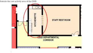 Based on this principle, the activity spaces in a CSSD could be organised as per figure 6 | Based on this principle, the activity spaces in a CSSD could be organised as per figure 6 [[File:Configuration of activity spaces.jpg|thumb|none|Figure 6: Configuration of activity spaces]] | ||