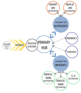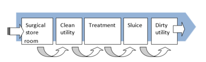 Workflow diagrams are provided to explain the flow of patients, clinical staff, support goods and services, maintenance staff, as well as the public. Workflow diagrams within departments are provided to assist in understanding the intradepartmental relationships that support the functional flow in the inpatient unit to ensure productive service delivery.