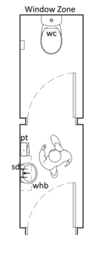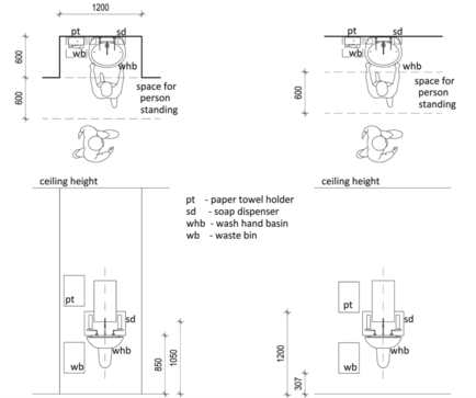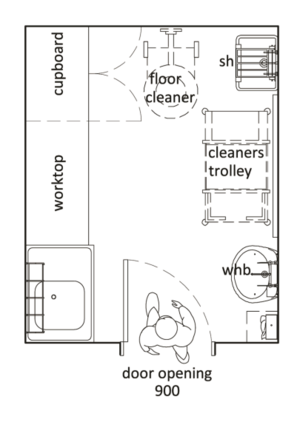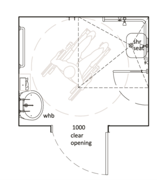A room containing a toilet and a hand basin for use by disabled persons with or without assistance is required. A minimum size of 5 m² is recommended.