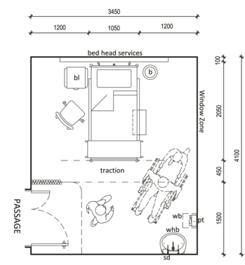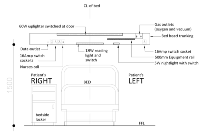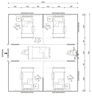 • The design should facilitate the delivery of care at the patient’s bedside or be proximal to the bedside whenever possible. This includes suitable services and supplies at the bedside.