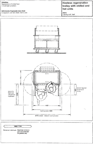 • Complete meals cooled in suitable crockery, can be heated in the food service unit and transported on trays in trolleys to the service points for serving to patients.