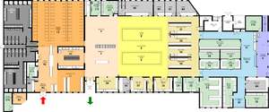 The transport corridors must be covered with an even surface, and ramps should be within the design tolerance required by the food trolleys. Alternative routes should be available in emergency situations. Due to the nature of the activities taking place in the catering department, it is a high fire-risk area. Fire-fighting vehicles should therefore need to have immediate and easy access to the unit.